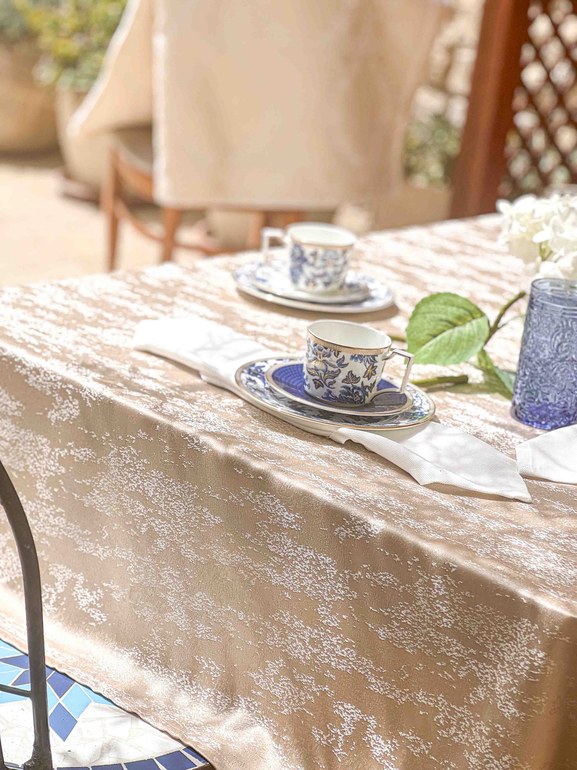 המפה תתאים לשולחן בסגנון אלגנטי, לסגנון מודרני ואף לסגנון רומנטי. היא מושלמת לחגים ואירוח, ותקפיץ כל סידור שולחן עם הברק הטבעי והעדין שלה.